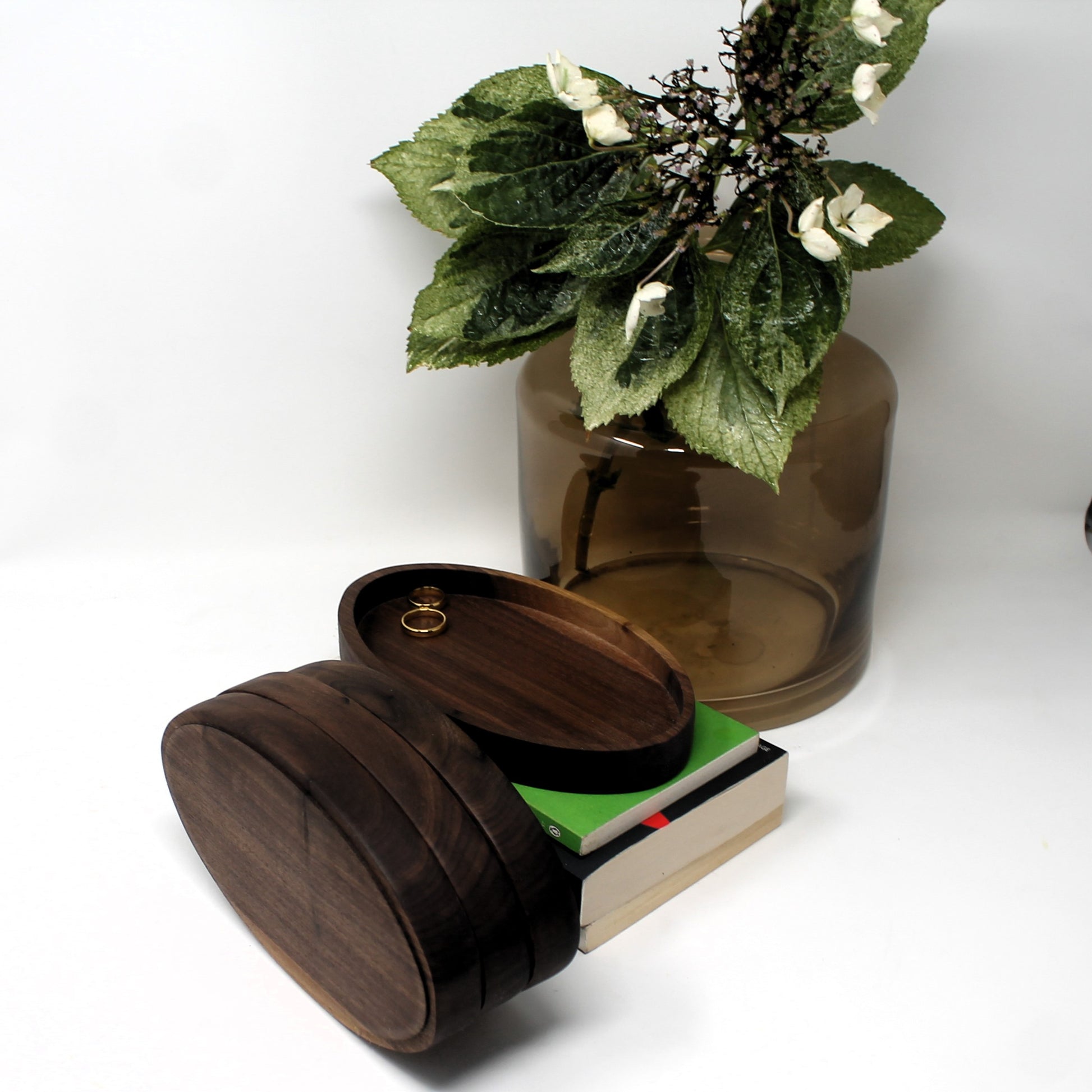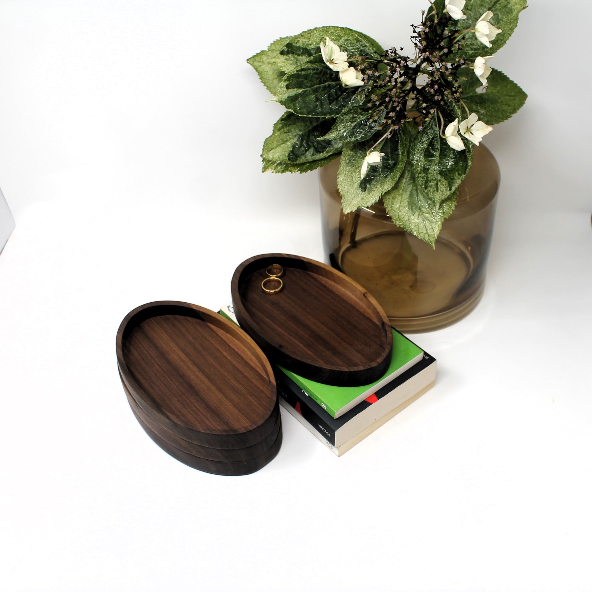 Sculpted Elegance: Solid Walnut Oval Stackable Trinket & Jewellery Tray