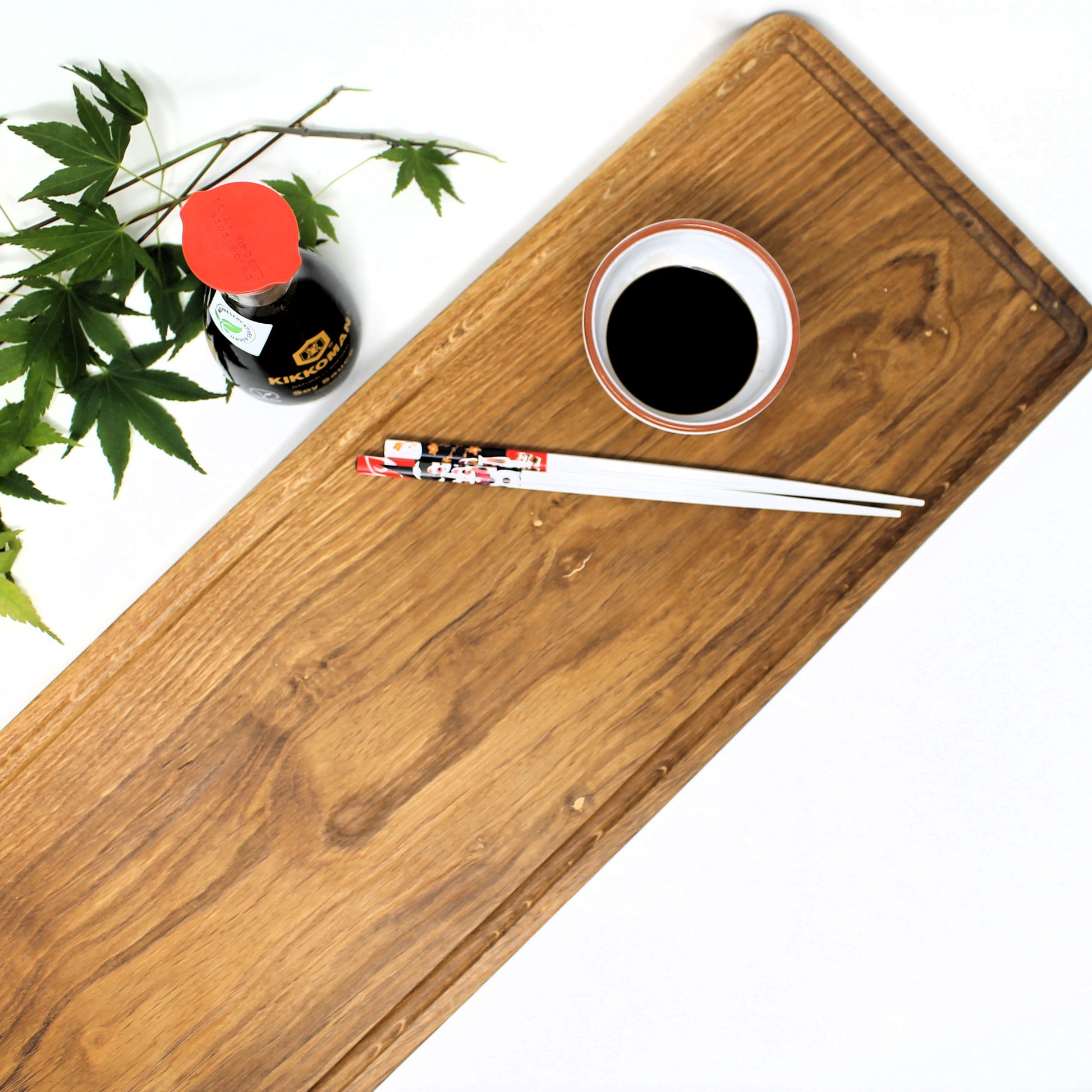Sanded smooth as a pebble, with food-safe oil to enhance the oak's natural beauty
