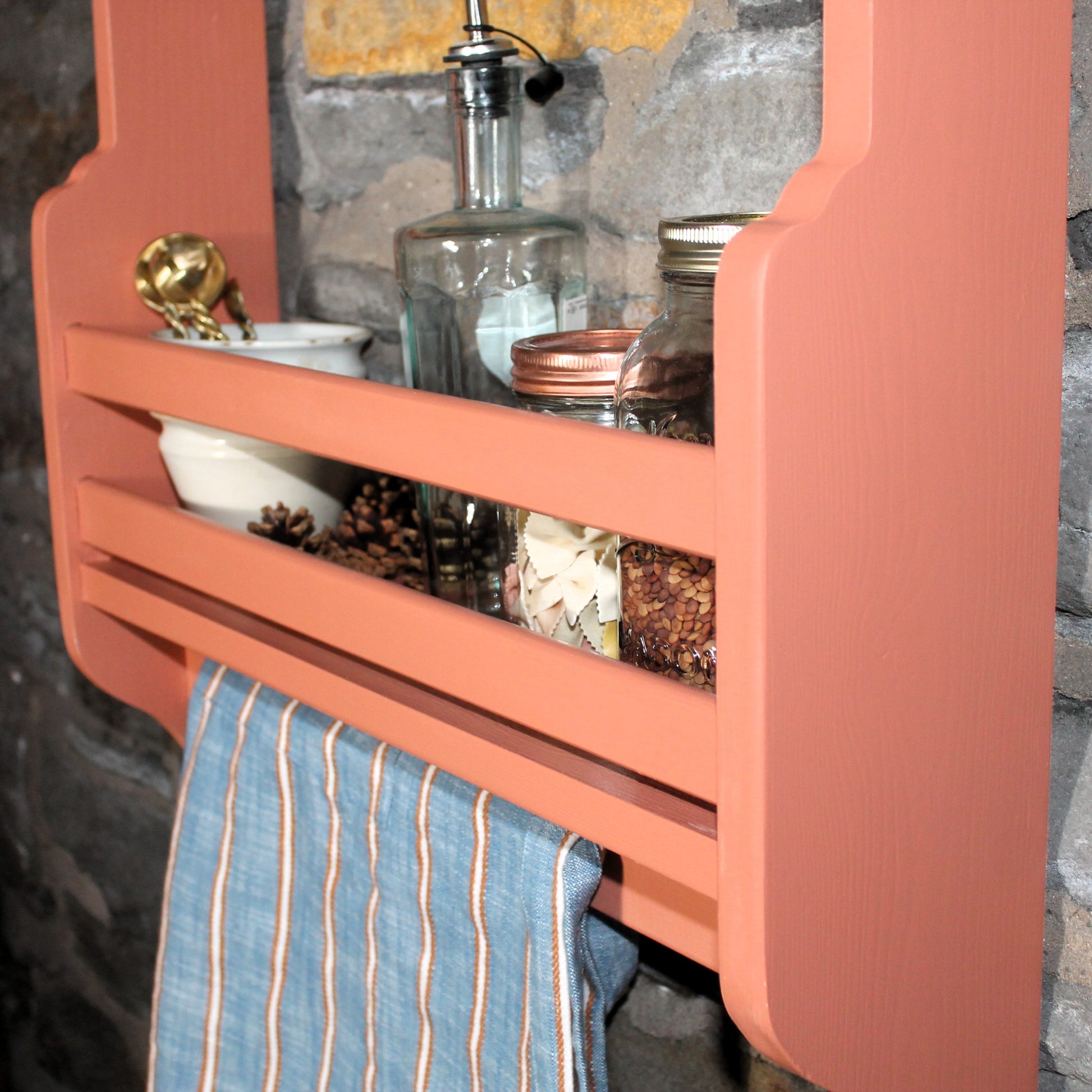 Useful hanging rail for a tea-towel or hooks for mugs, measuring spoons or utensils